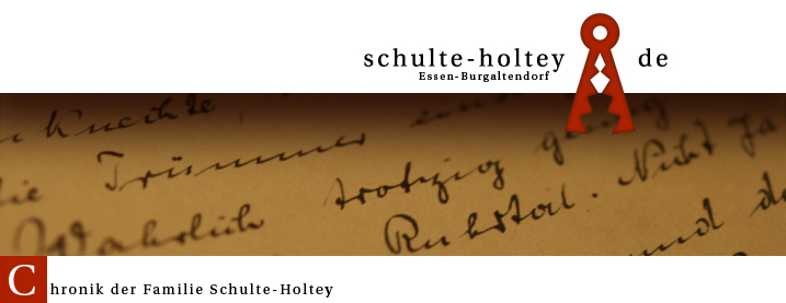 (Es folgen die Ahnenreihen, angefangen mit dem um 1638 geborenen Arndt Sch.-Holtey bis zum 1868 geborenen Heinrich Peter Arnold Sch.-Holtey und seinen Kindern. Diese Ahnenreihe ist bei Beisken ausführlicher dargestellt. Darum wird hier auf die Wiedergabe verzichtet. D. B.)